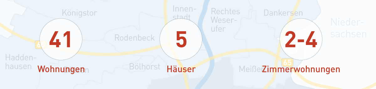 Das Quartier „Am Grundbach“ liegt verkehrsgünstig. Die Mindener Innenstadt ist schnell erreichbar. Auch die Umgehungsstraßen B 61 und B 65 sind nicht weit entfernt. Ein großer Supermarkt ist ebenfalls schnell erreichbar. Die Häuser befinden sich in einer ruhigen Umgebung, die durch viel Grün geprägt ist. Ein Blick aufs Wiehengebirge, dass zu Wanderungen einlädt, ist gegeben.